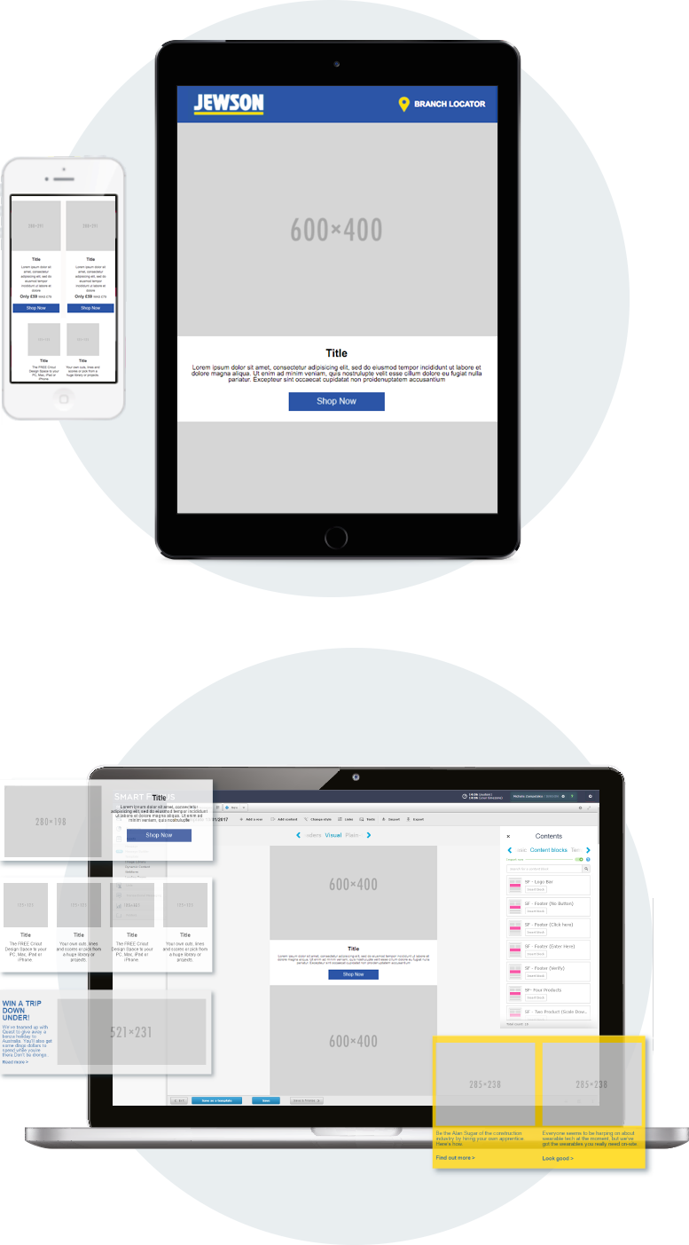 Jewson had multiple people in different regions managing their campaigns. The ask was to provide a template and component suite which all localised teams could use to personalise their weekly campaigns